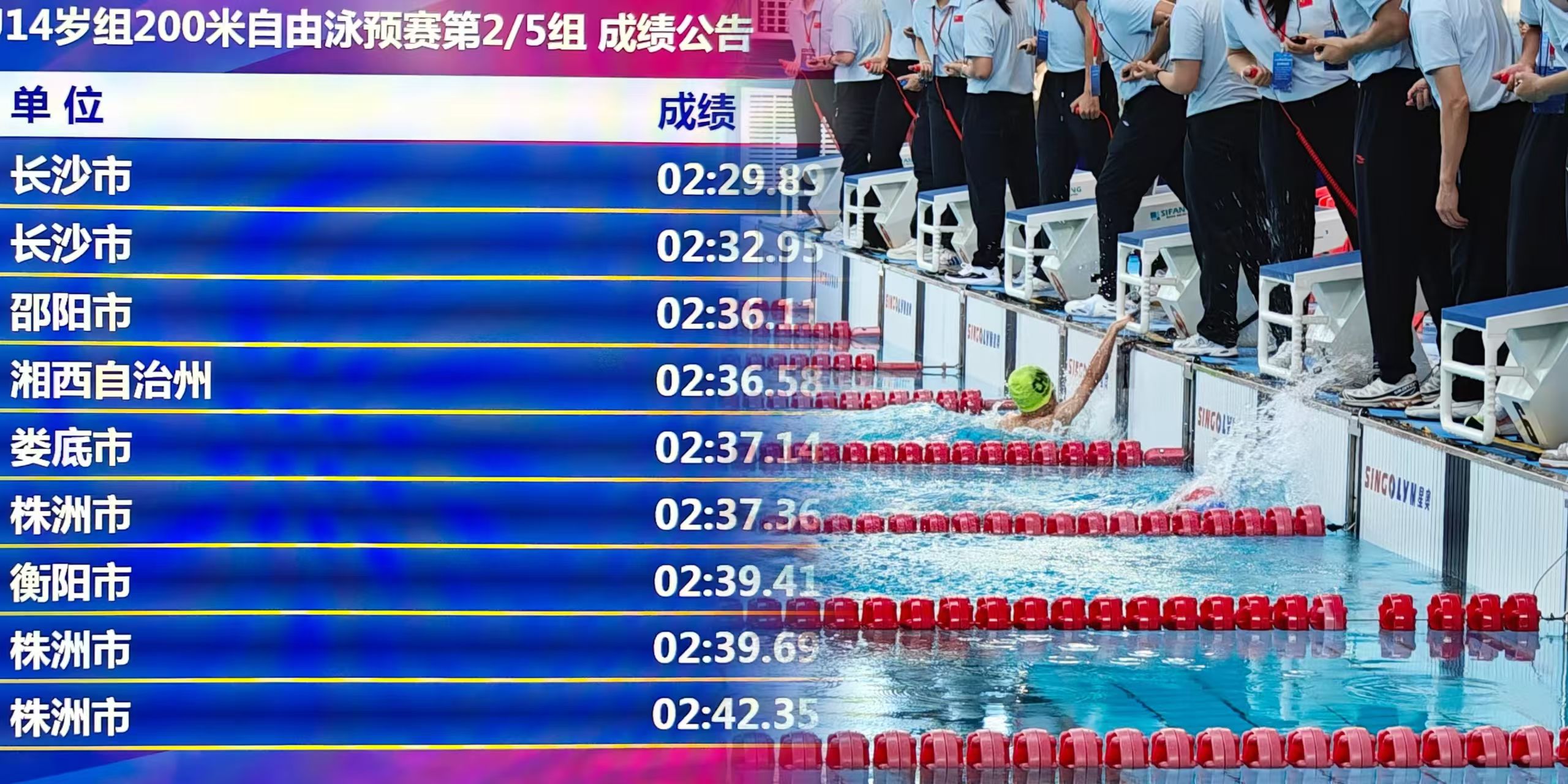 北京星奧科技股份有限公司作為本屆錦標(biāo)賽的技術(shù)支持單位,將提供"星奧云"體育賽事服務(wù)平臺(tái)及自主研發(fā)的專業(yè)游泳計(jì)時(shí)記分系統(tǒng),為賽事提供高效穩(wěn)定的技術(shù)保障。值得注意的是,在今年6月湖南省青少年游泳錦標(biāo)賽達(dá)標(biāo)賽中使用的正是該套系統(tǒng)設(shè)備,該系統(tǒng)能夠?qū)崟r(shí)精準(zhǔn)采集運(yùn)動(dòng)員自入水起的核心競(jìng)技指標(biāo),包括出發(fā)反應(yīng)時(shí)間、分段成績(jī)與終點(diǎn)成績(jī),并對(duì)海量數(shù)據(jù)進(jìn)行即時(shí)計(jì)算處理,處理結(jié)果通過(guò)場(chǎng)地顯示屏直觀展示,確?,F(xiàn)場(chǎng)觀眾第一時(shí)間掌握賽事實(shí)況信息。