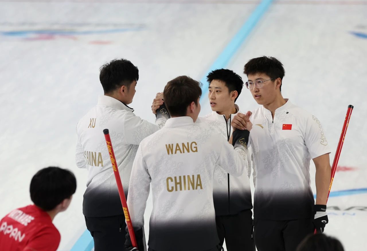 在比賽中,隊(duì)員們每打出好球,大家都會走近彼此,做一個(gè)擊拳的動作。比賽進(jìn)行到第四局,隨著日本隊(duì)再得2分,比分被拉開到4比1,中國隊(duì)處于落后。這時(shí)中國隊(duì)的隊(duì)員們并沒有慌張。“賽前我們進(jìn)行了詳細(xì)的準(zhǔn)備和演練,對于落后早有心理準(zhǔn)備,所以并沒有慌,而是在考慮怎么破局。”徐曉明說。第五局,中國隊(duì)大膽嘗試進(jìn)攻,不斷地?fù)麸w對手在營壘中的壺,最終為自己贏得主動,隨著最后一投結(jié)束,中國隊(duì)本局得到2分。比分迫近后,隊(duì)員們在營壘角落聚在一起,再一次擊拳。同時(shí),徐曉明、王智宇還在做著交流,臉上帶著微笑,并沒有感覺到因落后帶給他們的壓力。