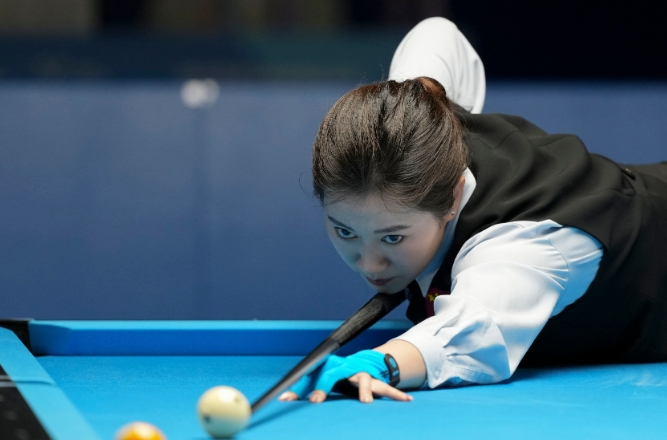 中國隊(duì)另一枚金牌來自女子花式臺(tái)球,韓雨強(qiáng)勢為中國隊(duì)再獲一枚金牌。進(jìn)入到最后一盤比賽的關(guān)鍵時(shí)刻,不僅是技術(shù)的較量,更是心態(tài)的比拼,當(dāng)時(shí)韓雨摸了摸胸前的五星紅旗。“我希望大家能給我力量,我們比賽時(shí)不是孤身一人。”韓雨說,此次隊(duì)員兼教練的身份也使她更多了一份責(zé)任。